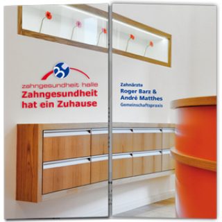Das Signet und der hochwertige Imageflyer der Zahnärzte Roger Barz und André Mathes spiegeln nicht nur ihr Leistungsspektrum wieder, sondern auch die Wohlfühlatmospäre der gesamten Praxis Zahngesundheit Halle.» www.zahngesundheit-halle.de